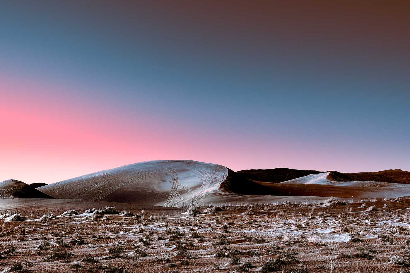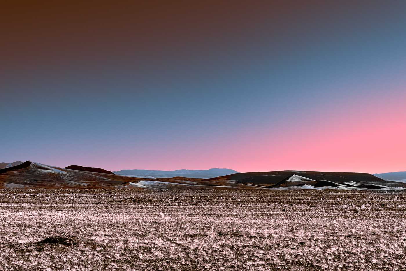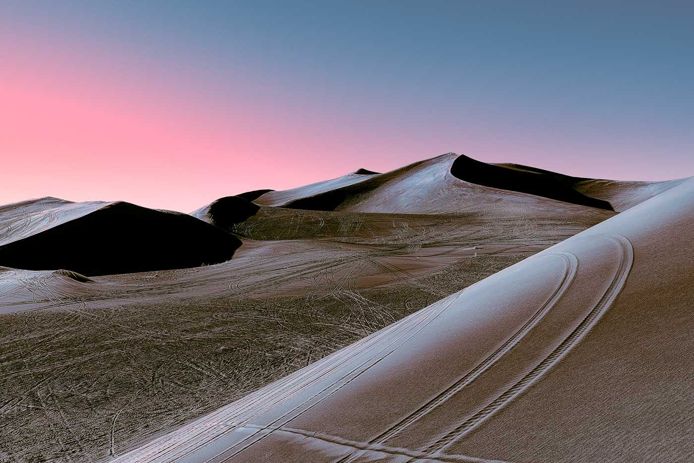 Stefano Gardel is a 37-year-old photographer and chiropractor who was born in Milan, Italy and currently lives and works in Lugano, Switzerland. Stefano focuses on landscaping, he travels the world, enjoys taking photographs of places and people. His latest series titled "Neon Desert" Gardel captured the lunar desert at the end of a sunset which has a pinkish glow.