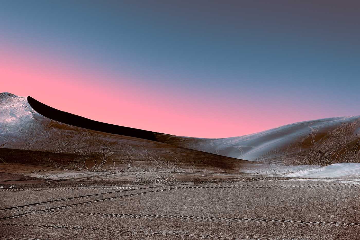 Stefano Gardel is a 37-year-old photographer and chiropractor who was born in Milan, Italy and currently lives and works in Lugano, Switzerland. Stefano focuses on landscaping, he travels the world, enjoys taking photographs of places and people. His latest series titled "Neon Desert" Gardel captured the lunar desert at the end of a sunset which has a pinkish glow.